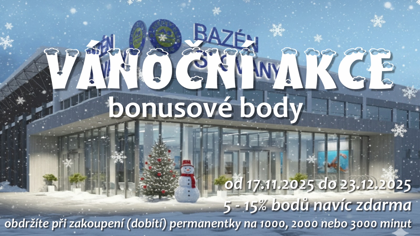 * Akce se vztahuje pouze pro dobití permanentek do bazénu a do sauny, a to na 1000 minut (+5 % NAVÍC), 2000 minut (+10 % NAVÍC) A 3000 minut (+15 % NAVÍC)